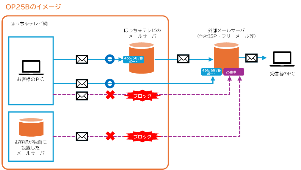 ほっちゃテレビでは、Outbound Port 25 Blocking(OP25B)を導入しております。