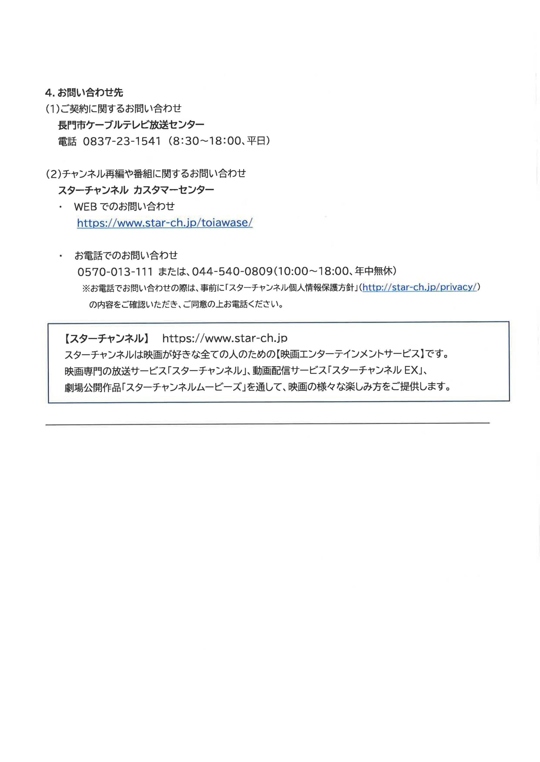 「スターチャンネル」チャンネル編成変更および料金改定のお知らせ